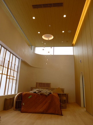 受付から一般待合室に向かうと、ホテルのような5mもある吹き抜けに不思議なライト。うちもこんな風にして見たかったなあ、、